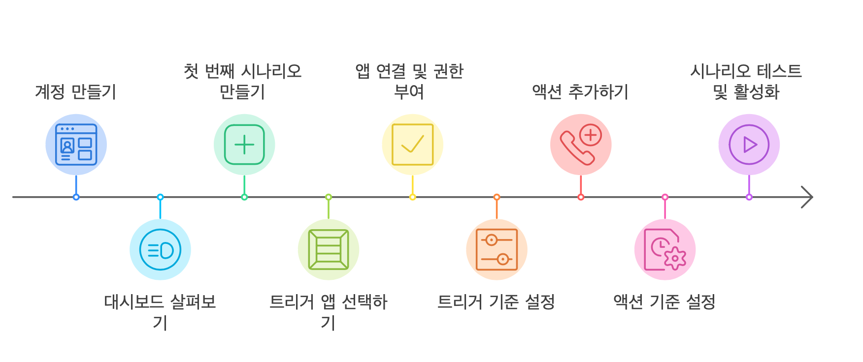 - 다양한 앱 통합: 워드프레스, 구글 스프레드시트, 슬랙, 이메일 등 수백 개의 앱과 연동 가능.